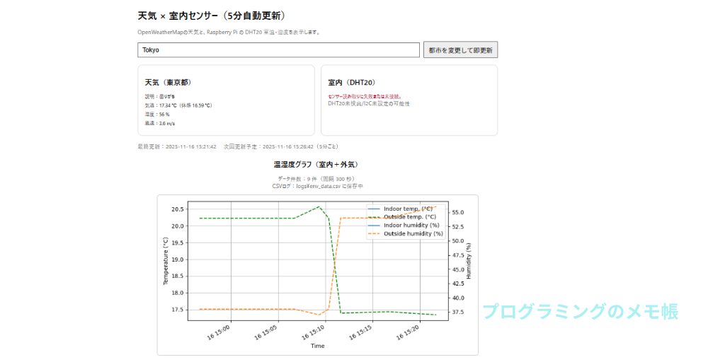 【電子工作】Flask×OpenWeatherMap×Raspberry Piで作る!室内温湿度 × 天気情報 × Matplotlib グラフ × CSVログのWebアプリ
